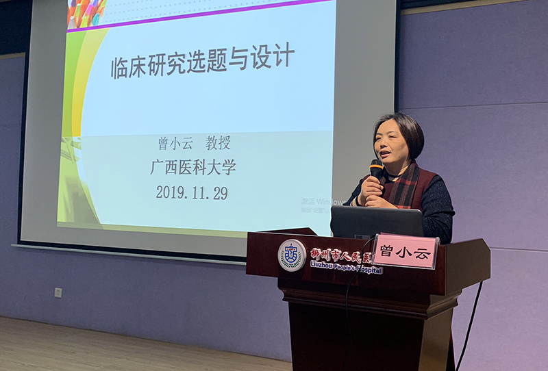 曾小云教授作了題為《臨床研究的選題與設計》講座。曾教授從科研選題、臨床研究設計基本原則、實驗設計基本要素等方面進行了系列講解。并用大量實例詳細介紹如何進行描述性研究、病因類研究、臨床療效類、醫學管理類研究的選題和設計。曾教授勉勵大家,好的選題就是成功的開始,選題不是憑空而來,臨床醫生需要在閱讀海量文獻的基礎上,結合臨床實際,不斷總結才能找到好的選題思路。