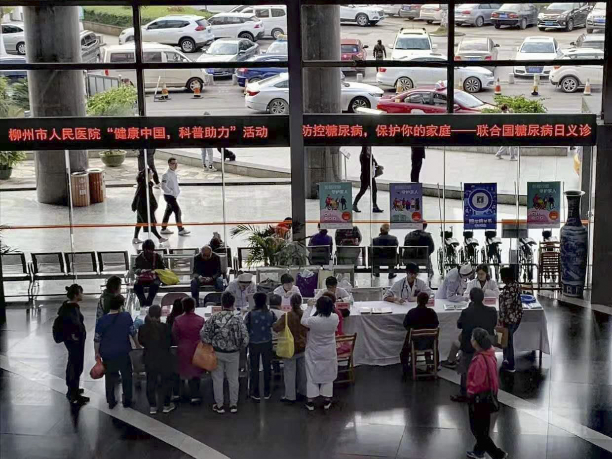 11月14日上午10時,我院內分泌科在門診一樓大廳聯合營養科、心血管內科、神經內科開展糖尿病及其并發癥義診活動,給予免費測量血壓、血糖、糖化血紅蛋白、發放科普宣傳資料。