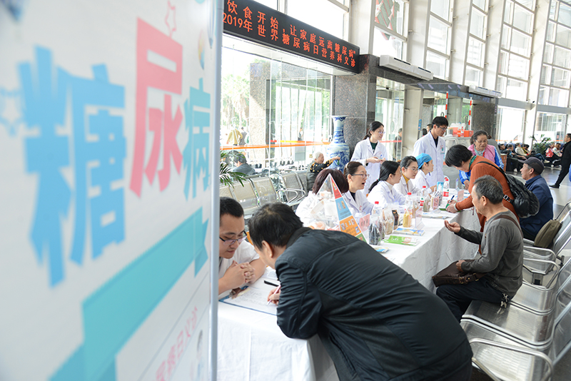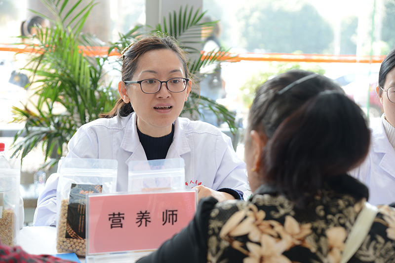 11月14日為“聯合國糖尿病日”,為加強糖尿病患者對飲食治療重要性的認識、向廣大群眾宣傳糖尿病的飲食防治等知識,我院營養科聯合內分泌科專家共7人于11月22日上午在醫院門診大廳舉行義診活動。