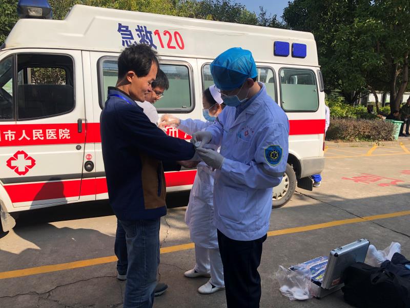 急救同時根據(jù)應(yīng)急預(yù)案,通知院內(nèi)急診科,急診科匯報上級行政部門負責(zé)組織協(xié)調(diào)。