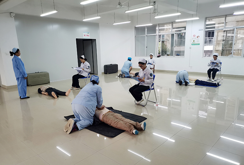 當各種原因引起心跳、呼吸驟停時,“心肺復蘇術”是最有效的緊急救護技術。為了讓全院陪護、護送及護工人員能正確地掌握心肺復蘇術,2019年10月17-18日,在醫務部、護理部組織下,我院急診科護理團隊對全院300余名陪護、護送及護工人員開展了生動而實用的心肺復蘇培訓課,旨在鼓勵他們積極參與急診急救工作,做到早發現、早實施有效的心肺復蘇術,建立“生命第一”的急救理念,從而提高心臟驟停的搶救成功率。此次培訓內容包括理論授課、操作培訓兩大部分。培訓過程中,全體員工聽課認真,老師與員工們進行一對一的操作指導訓練,學習氛圍濃厚,效果良好。