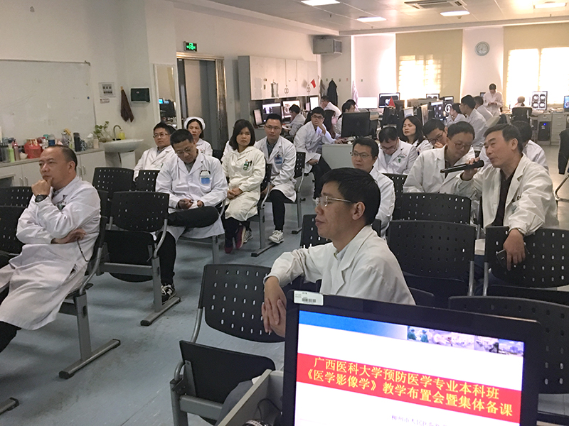 廣西醫(yī)科大學(xué)2017級(jí)預(yù)防系本科全程教學(xué)即將在我院全面展開(kāi),為確保《醫(yī)學(xué)影像學(xué)》教學(xué)工作順利開(kāi)展,提高臨床醫(yī)學(xué)教學(xué)質(zhì)量,實(shí)現(xiàn)規(guī)范化、標(biāo)準(zhǔn)化、同質(zhì)化的教學(xué)目標(biāo),2019年10月31日上午,我院醫(yī)學(xué)影像教研室在放射科大會(huì)議室召開(kāi)《醫(yī)學(xué)影像學(xué)》教學(xué)工作布置會(huì)暨集體備課活動(dòng)。