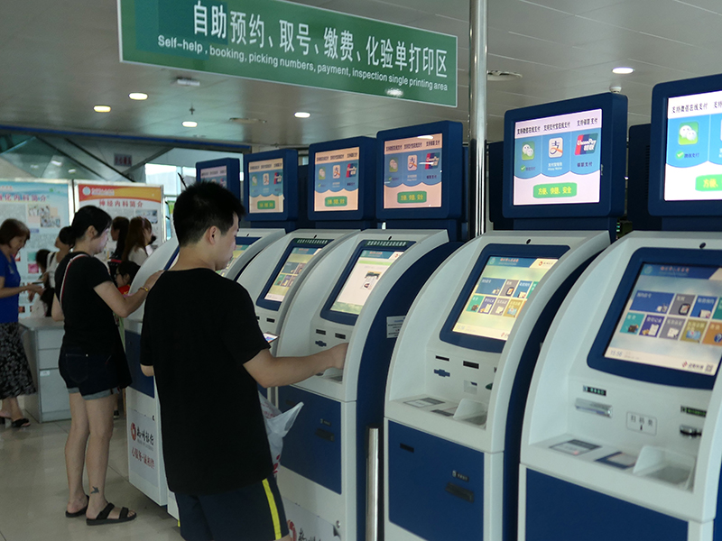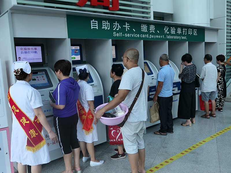 嘿!可別小看了這些其貌不揚的機器,正是這些機器,解決了之前看病所需要的繁瑣流程。它將辦理就診卡、購買病歷本、預(yù)約掛號、繳費、打印化驗單等等這些事情全部匯聚到同一個區(qū)域,大大縮減了大伙看病所需的時間,更好的為市民服務(wù)。