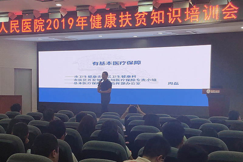 按照市衛健委相關文件,為進一步深化醫藥衛生體制改革,深入實施“改善醫療服務行動計劃”,助推醫療健康扶貧工作,優化醫療服務流程,提供安全有效、便捷的醫療服務,切實解決群眾“看病難,看病貴”的問題,同時為進一步提高我院醫務人員對健康扶貧知識的了解,全面落實健康扶貧工作任務,7月26日下午,醫院邀請了柳州市衛健委基層衛生健康科周磊科長及柳州市醫保局待遇保障科謝瓊芳科長,在第一學術廳舉行全院醫務人員健康扶貧知識培訓,會議由醫務科溫懌濤科長主持,臨床各科室、職能科室及總值班人員共300余人參加了此次培訓。