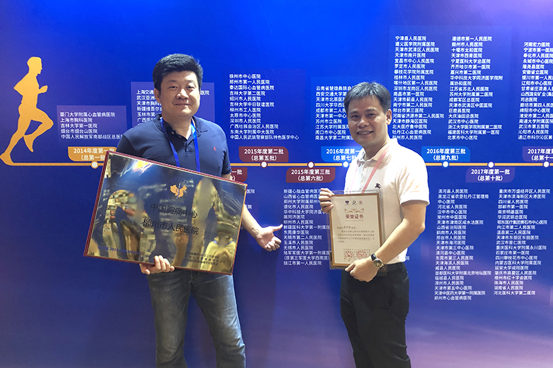 2014年,我院開始籌備胸痛中心建設,經過不斷探索及改進,2015年11月,我院成功通過國家胸痛中心的認證。我院胸痛中心通過認證以來,救治胸痛患者近萬例,現年冠脈介入量及急診PCI救治能力位于柳州市前列及全區先進水平;改善了急診患者的預后,挽救了患者的生命,大幅度節約了社會醫療資源。通過不斷優化醫院胸痛診療流程、有效整合院內外資源,在數據采集、傳輸運行、質量控制等方面嚴格管理,2017年,我院獲得中國胸痛中心年度質控銀獎。此外,我院有兩名國家胸痛中心核查專家、兩名培訓專家、兩名暗訪專家;2018年,蔣芳勇主任醫師獲“胸痛中心建設年度杰出專家”稱號,在此次大會中,還榮獲了“披星戴月獎”;去年柳州市胸痛中心質量控制中心掛靠我院。在發展自身的同時,積極組織專家對柳州市多家單位胸痛中心建設進行指導和督查,幫扶其成功通過國家胸痛中心的認證,并積極參與國家胸痛中心認證及培訓工作,為柳州市及國家胸痛中心建設做了很大的貢獻。