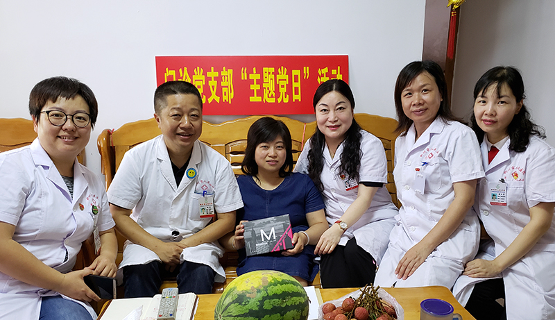 志愿者們首先針對(duì)袁茵今年5月在我院免費(fèi)體檢時(shí)發(fā)現(xiàn)的一些健康問題作了詳細(xì)地解答和健康指導(dǎo),教她如何在日常生活中合理搭配平衡膳食,最后還親切地和她拉起了家常。在了解她的成長過程、生活和工作情況后,大家都被她堅(jiān)韌不拔、敬業(yè)奉獻(xiàn)、誠實(shí)守信的精神所感動(dòng),臨走時(shí)為她送上黨員同志們精心準(zhǔn)備的一份愛心禮物。
