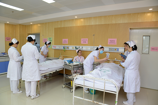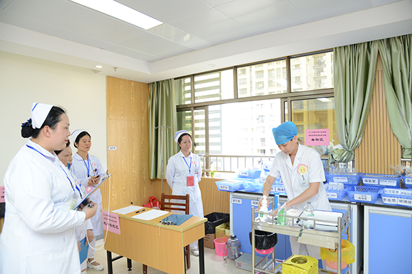 大賽延續去年賽事形式,設5個分賽場進行賽場式團體賽。臨床護理操作比賽項目共三項,比賽內容以案例(病例)為主線,在健康評估基礎上重點考核選手的臨床思維及判斷能力和護理操作技能。護理部副主任、大科護士長及臨床各護理單元護士長共35人擔任評委。比賽過程嚴肅認真、井然有序,賽場中評委們專心致志,公正評分,參賽選手們操作沉穩,動作規范,大家都以最佳的精神面貌展現出屬于護理人員的風采。