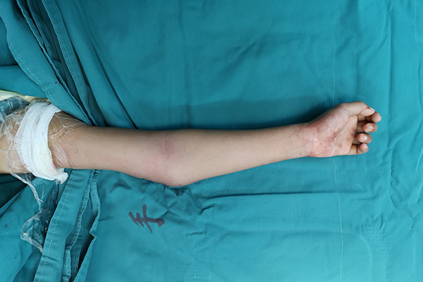 3月20日,李富明、王棟棟、胡曉東等醫(yī)師合作順利完成手術,糾正了女孩提攜角高達50度的肘關節(jié)外翻畸形,同時處理了外髁骨不連,術后患兒肘關節(jié)屈伸正常。小花看著恢復正常的右手,露出了久違的笑容。