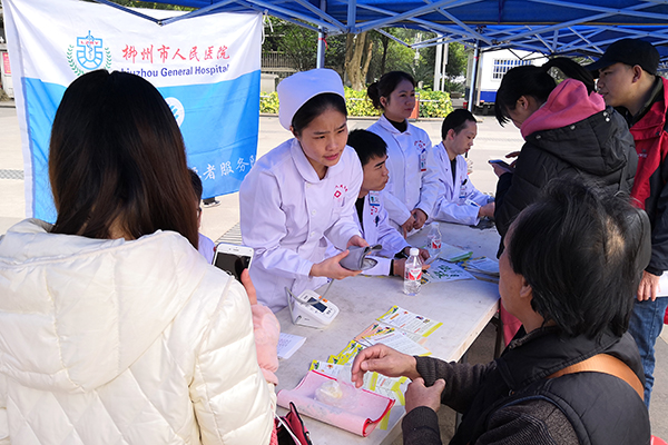 1月26日上午,醫院團委、醫務社工部組織住培團支部、兒科、婦科的5名志愿者,參加了由市委文明辦在市人民廣場舉辦的柳州市“我們的節日?春節”2019年新時代文明實踐活動,為廣大群眾提供免費的健康義診服務。