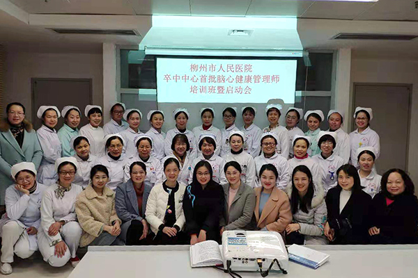 2019年3月6日-7日,柳州市人民醫院卒中中心聯合護理部開展《第一屆腦心健康管理師培訓班》。培訓班由神經內科李曉虹護士長主持,卒中中心醫療總監、神經內科陳紅主任,護理部羅輯副主任、覃秋玉副主任,大內科覃玉麗護士長,中國腦心健康管理師神經內科護士樊金花以及來自卒中相關的9個科室的護士長及學員參加了此次培訓班的啟動會儀式。參加培訓的24名學員是從神經內科、神經外科、康復科、心血管內科、內分泌科等12個卒中相關病區層層遴選出的骨干護士。