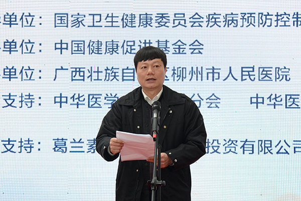 活動由我院副院長黎榮山主持,中國健康促進基金會副理事長徐卸古、自治區(qū)衛(wèi)生健康委疾控處副處長莫飛宇、市衛(wèi)生計生委副主任肖波、項目專家組代表——上海南京軍區(qū)臨床肝病中心陳成偉教授分別致辭。