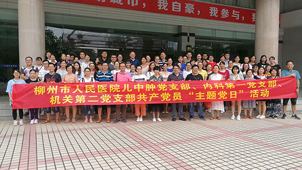 9月14日下午,我院兒科、中醫科、腫瘤科黨支部,內科第一黨支部和機關第二黨支部到柳州市工商局共同開展了共產黨員“主題黨日”活動,醫院黨委委員、副院長黎榮山與三個支部70多名黨員參加了此次活動。