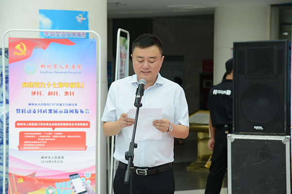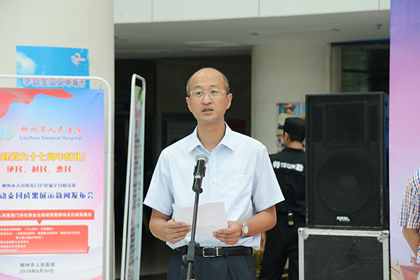 當(dāng)天上午,我院在門診一樓大廳舉行門診醫(yī)保全自助結(jié)算啟用暨移動(dòng)支付成果展示新聞發(fā)布會(huì),向社會(huì)各界宣傳和展示了我院智慧醫(yī)院建設(shè)的最新成就。市衛(wèi)生計(jì)生委黨組書(shū)記、主任林衛(wèi),市社保局局長(zhǎng)張永強(qiáng),市人社局信息中心主任譚磊、副主任席百明,我院黨委書(shū)記王豫平及相關(guān)科室負(fù)責(zé)人出席新聞發(fā)布會(huì)。廣西日?qǐng)?bào)、廣西電視臺(tái)、柳州日?qǐng)?bào)社、柳州電視臺(tái)、南國(guó)今報(bào)等多家媒體記者到場(chǎng)報(bào)道。