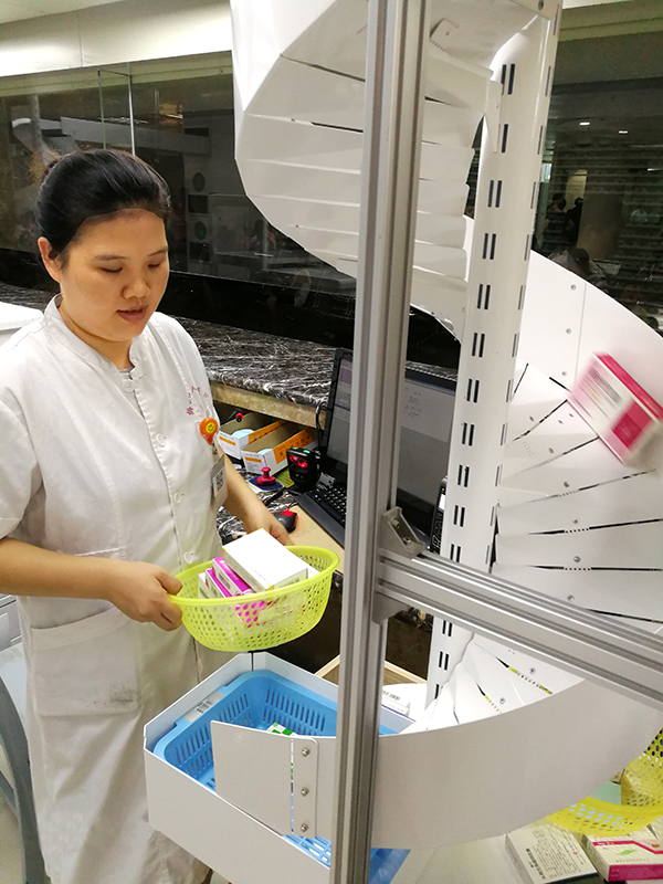 門診西藥房。是醫院服務示范窗口,以方便人民群眾就醫為落腳點,不斷改善發藥服務流程。通過設置系統和人工兩道核對程序,大幅降低了藥品發放差錯的可能性;引進兩臺全自動發藥機及一系列智能化管理系統,縮短了藥品調配、發放時間,成功實現由“人等藥”向“藥等人”的轉變。
