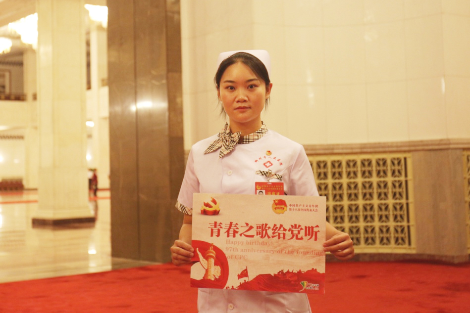 2018年6月26日至29日,中國共產主義青年團第十八次全國代表大會在北京召開。我院外科團支部書記、心胸外科護士王華作為廣西衛生計生系統唯一的一名團十八大代表,與1500多名來自全國各地的青年代表參加了大會。