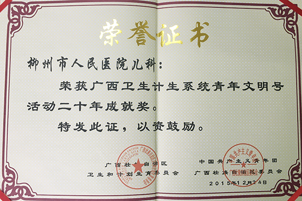 支部重視青年文明號建設(shè)工作,以青年文明號為載體激發(fā)青年人創(chuàng)新創(chuàng)業(yè)服務(wù)社會的激情和熱情,取得了突出成績。兒科青年文明號被命名為自治區(qū)級青年文明號,榮獲廣西衛(wèi)生計生系統(tǒng)青年文明號活動二十年成就獎、柳州市青年文明號活動二十年成就獎等榮譽(yù)。2017年,積極響應(yīng)柳州市“百號助百村”青春扶貧活動號召,與融安縣板欖鎮(zhèn)的7個貧困村結(jié)成幫扶對子,派出4批共20名志愿者到該幫扶點(diǎn)開展義診服務(wù),服務(wù)群眾900余人次,為當(dāng)?shù)匦l(wèi)生脫貧工作作出了貢獻(xiàn),并作為活動先進(jìn)典型,在全市青年文明號工作會議上作經(jīng)驗交流。