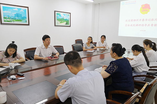 2018年6月7日上午,團(tuán)柳州市委書記張閏一行到我院調(diào)研并指導(dǎo)共青團(tuán)工作。我院黨委副書記、紀(jì)委書記廖慶蘭,團(tuán)委書記馬哲民,各團(tuán)支部書記參加了調(diào)研座談會。