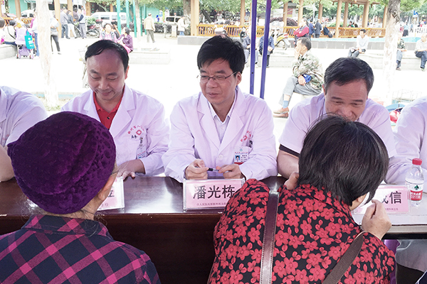 為滿足融水縣人民群眾的就醫(yī)需求,真正讓群眾在家門口就能享受到三甲醫(yī)院專家的服務(wù)。4月24日上午,由我院副院長(zhǎng)潘光棟博士帶領(lǐng)肝膽外科、脊柱外科、關(guān)節(jié)骨病科、泌尿外科、乳腺甲狀腺外科、心胸外科、顱腦外科、胃腸外科、血管外科及麻醉科的專家組一行15人到融水縣進(jìn)行大型義診活動(dòng)。