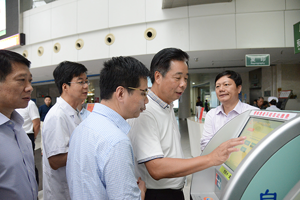 考察交流團先后參觀了我院分級診療接待臺、兒科門診急診區域、功能科、放射科、收費管理辦公室、入院出院接待處、遠程醫學中心以及實訓中心,雙方就信息化建設、特色專科、遠程醫療、住培工作等方面進行了探討交流。