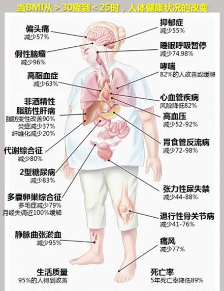 ③與正常體重者相比,超重與肥胖患者腦中風(fēng)的病死率顯著增加(男性:增加 23%—51%,女性:增加 15%—49%)
