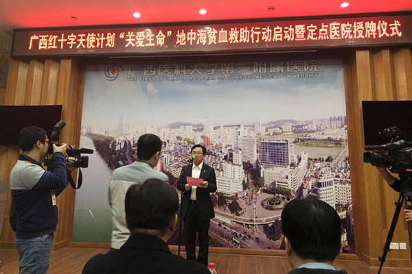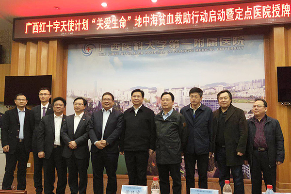 為進一步擴大活動影響,救助更多有需要幫助的重癥地貧患兒,12月28日上午,在廣西醫科大學第一附屬醫院舉行廣西紅十字會天使計劃“關愛生命”地中海貧血救助行動啟動暨定點醫院授牌儀式,我院易平副院長、血液科黃錦雄主任、兒科龍興江副主任代表我院出席了儀式。