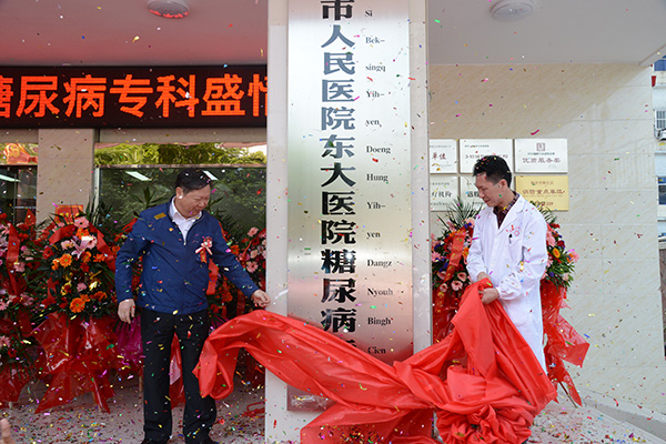今天上午,柳州市人民醫院與東大醫院共同組建的糖尿病專科舉行了隆重揭牌儀式。這是柳州市人民醫院作為醫聯體的牽頭單位,積極承擔社會責任,有責任有義務幫扶基層醫院和民營醫院的發展,下放醫療資源,將優質醫療資源進行分享和延伸,通過專科合作、技術幫扶、人才培養、雙向轉診等方式推動醫聯體的共同發展與繁榮,讓老百姓放心在家門口享受三級醫院專家的優質醫療服務。