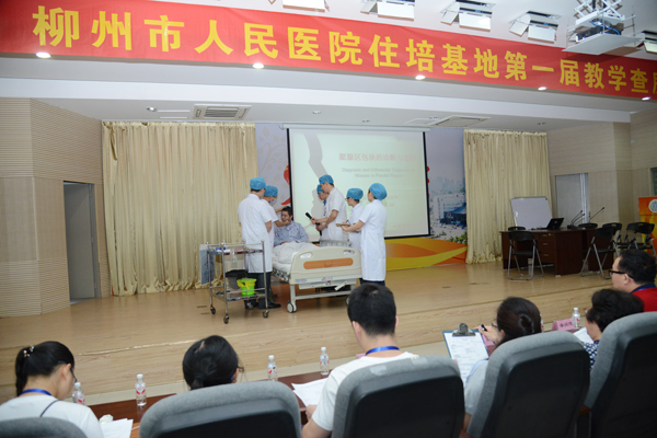 為進一步加強住院醫師規范化培訓教學查房的管理,使教學查房的質量進一步規范化、同質化,激發學生學習熱情,培養臨床思維能力,強化臨床帶教老師的教學意識,共同提升培訓主基地和協同基地的培訓質量和教學質量,達到培教同質化的目的。柳州市人民醫院攜手三個住培協同單位,將專業基地的教學查房整個過程搬上“舞臺”,于2017年5月20日在柳州市人民醫院第一、第二學術廳隆重舉行住院醫師規范化培訓基地第一屆教學查房比賽。經過層層篩選,來自培訓主基地的柳州市人民醫院、培訓協同基地的柳鐵中心醫院、廣西腦科醫院和柳州市婦幼保健院4家醫院的24支代表隊參加了比賽。