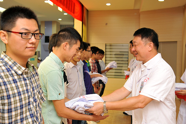 7月29日上午,柳州市人民醫院2016年新職工崗前培訓教育總結會暨新職工授衣授帽儀式在我院第一學術廳舉行。院黨委書記王豫平,黨委副書記、紀委書記廖慶蘭,副院長潘光棟,副院長林正奎出席活動。