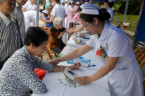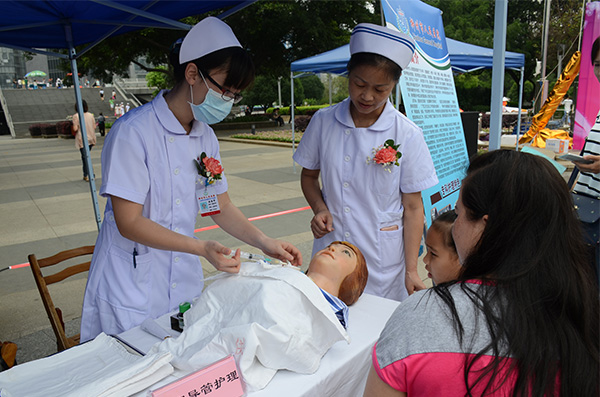 活動(dòng)中,我院護(hù)士為市民提供了血糖測(cè)定、糖尿病的預(yù)防及護(hù)理、血壓監(jiān)測(cè)、冠心病患者的運(yùn)動(dòng)及休息方法等咨詢以及慢性傷口換藥處理等醫(yī)療服務(wù),PICC??莆槊谰曜o(hù)士長(zhǎng)等醫(yī)護(hù)人員還現(xiàn)場(chǎng)演示了腫瘤病人長(zhǎng)期化療帶深靜脈導(dǎo)管時(shí)的居家導(dǎo)管護(hù)理方法。