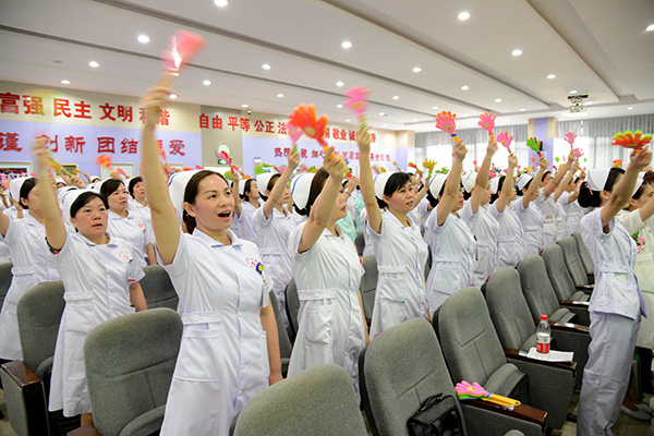 我院各臨床和職能部門的負(fù)責(zé)人、支部書記、、護(hù)理老前輩及全院護(hù)理管理人員及護(hù)士代表300多人參加了大會(huì),隆重而熱烈的紀(jì)念大會(huì)在全體人員共同歌唱《中國(guó)護(hù)士之歌》中圓滿結(jié)束!