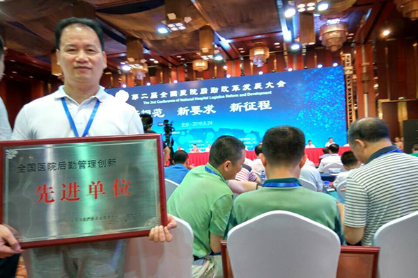 6月23-24日,由全國衛生產業企業管理協會主辦的“第二屆全國醫院后勤改革發展大會”在北京舉行,本次大會的主題是“新規范、新要求、新征程——推動后勤標準化、提高服務質量和水平”。我醫院喜獲“全國醫院后勤管理創新先進單位”稱號,全國87家醫院獲此榮譽,我院是柳州市唯一一家獲獎醫院,林正奎副院長代表醫院上臺領獎。全國近30個省市自治區的醫療機構代表、專家學者700余人參加了本次大會。全國政協副主席張梅穎、國家衛生計生委及相關部委領導出席會議。