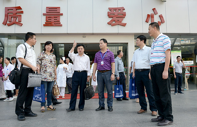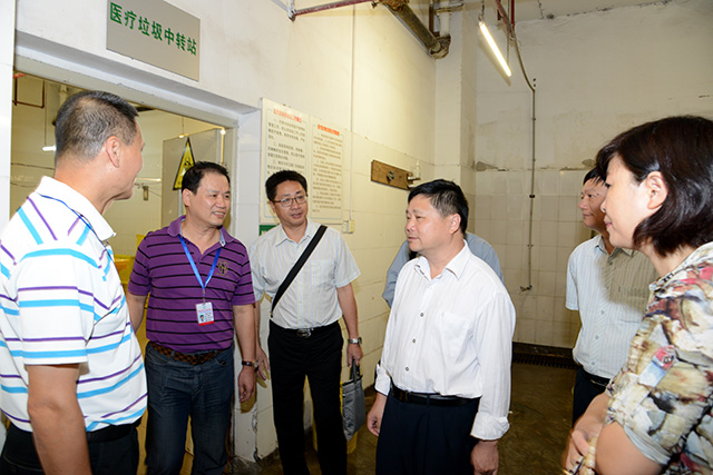2015年10月15日下午,自治區綠色環保系列創建復查活動考核評估組宋洪濤一行6人,在市衛計委肖波副主任、環保局覃國琴總工程師的陪同下,對我院創建自治區“五星級”綠色環保醫院工作進行考核評審。在醫院林正奎副院長及相關科室人員的陪同下,考評組實地查看醫院環境、宣傳欄、門診預約診療、西藥房取藥排隊叫號系統、放射科自助膠片、報告打印系統、入院出院病人接待處、垃圾處置中轉站等。林正奎副院長代表醫院作創建“五星級”綠色環保醫院工作匯報,檢查組通過查閱資料對我院的創建工作進行了全面、細致的檢查。