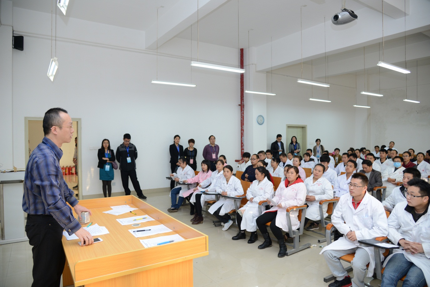 2015年國家醫師資格考試鄉村全科執業助理醫師摸底測試實踐技能考試于11月22日在我院進行,柳州市作為全國的5個試點城市之一,我院作為國家醫師資格考試基地,承擔本次考試的實踐技能考務工作,在醫院領導大力支持及相關部門積極配合下順利完成六縣180名鄉村考生的考試任務,國家及自治區醫學考試中心領導、專家,自治區及市衛計委相關部門領導全程督導檢查、指導本次考務工作,并對我院本次考試的籌備及考務管理工作予以肯定及表揚。