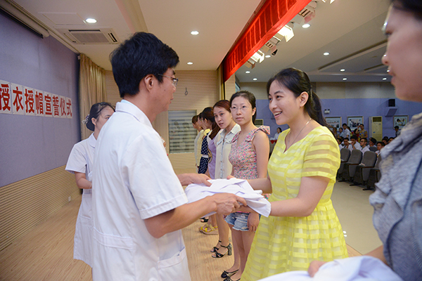 2015年7月31日上午,我院2015年新職工崗前培訓教育總結會暨新職工授衣授帽儀式在辦公樓第一學術廳舉行,為期半個月的新職工崗前培訓工作落下帷幕,院黨委書記王豫平等領導及職能科室負責人、全院各科護士長及206名新職工參加了會議。