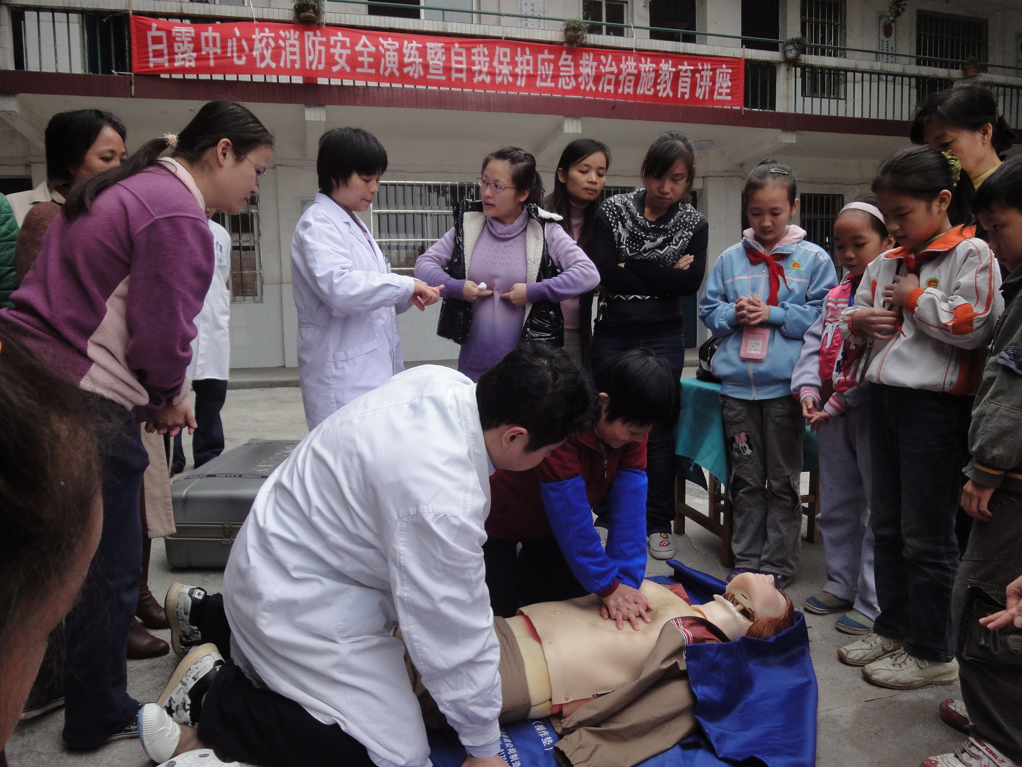 2011年11月9日下午,院團委和醫務部組織4名醫務人員志愿者來到位于柳州市長鋒路的農民工小學--白露中心校進行生活急救知識講座。白露中心校的全體學生和老師約500余人聽取了本次講座,此次講座對如扭傷、燙傷、動物咬傷、骨折等的生活急救知識進行了宣教,最后為師生們演示了心肺復蘇的搶救并邀請學生和老師進行體驗,收到了良好的宣教效果,得到了廣大師生的認可和歡迎。