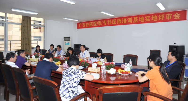 2011年4月26日,廣西衛生廳科教處的相關人員來到我院,對我院住院醫師規范化培訓基地實地進行評審,由衛生廳科教處唐小嵐領隊的評審團一行9人,對我院申報的神經內科、康復科、皮膚科、全科醫學、小兒外科、麻醉科、檢驗科、口腔科8個培訓基地進行評審,各評審專家考察了各培訓基地場地、設備等情況,并抽查了我院醫務人員基本技能。實地評審后,專家們對評審情況進行了反饋,對我院住院醫師培訓基地的建設規模、師資隊伍、專業技能和管理工作給予了充分的肯定。 (醫務科)