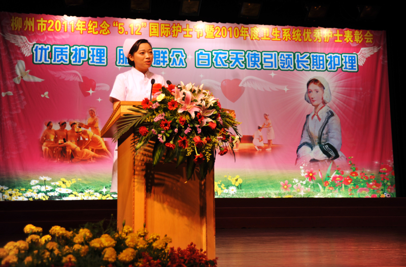 5月11日下午,柳州市舉行紀念“5.12”國際護士節暨2010年度衛生系統優秀護士表彰會,我院32名護士被評為柳州市2010年度優秀護士,在此次表彰會上受到表彰。在全國優質護理服務考核中榮獲優秀個人的我院ICU護士張芳作為優秀護士代表在會上發言。在隨后進行的文藝演出上,我院舞蹈隊演出的舞蹈《吟春》獲得與會嘉賓的一致好評。