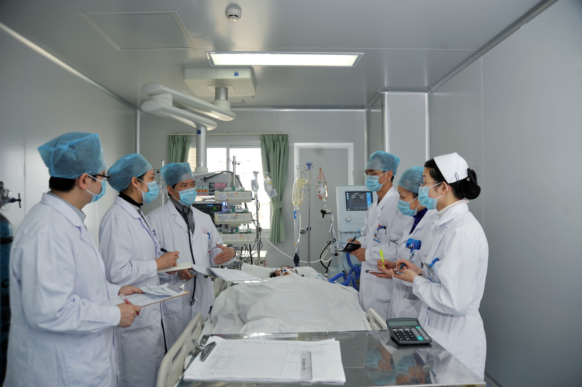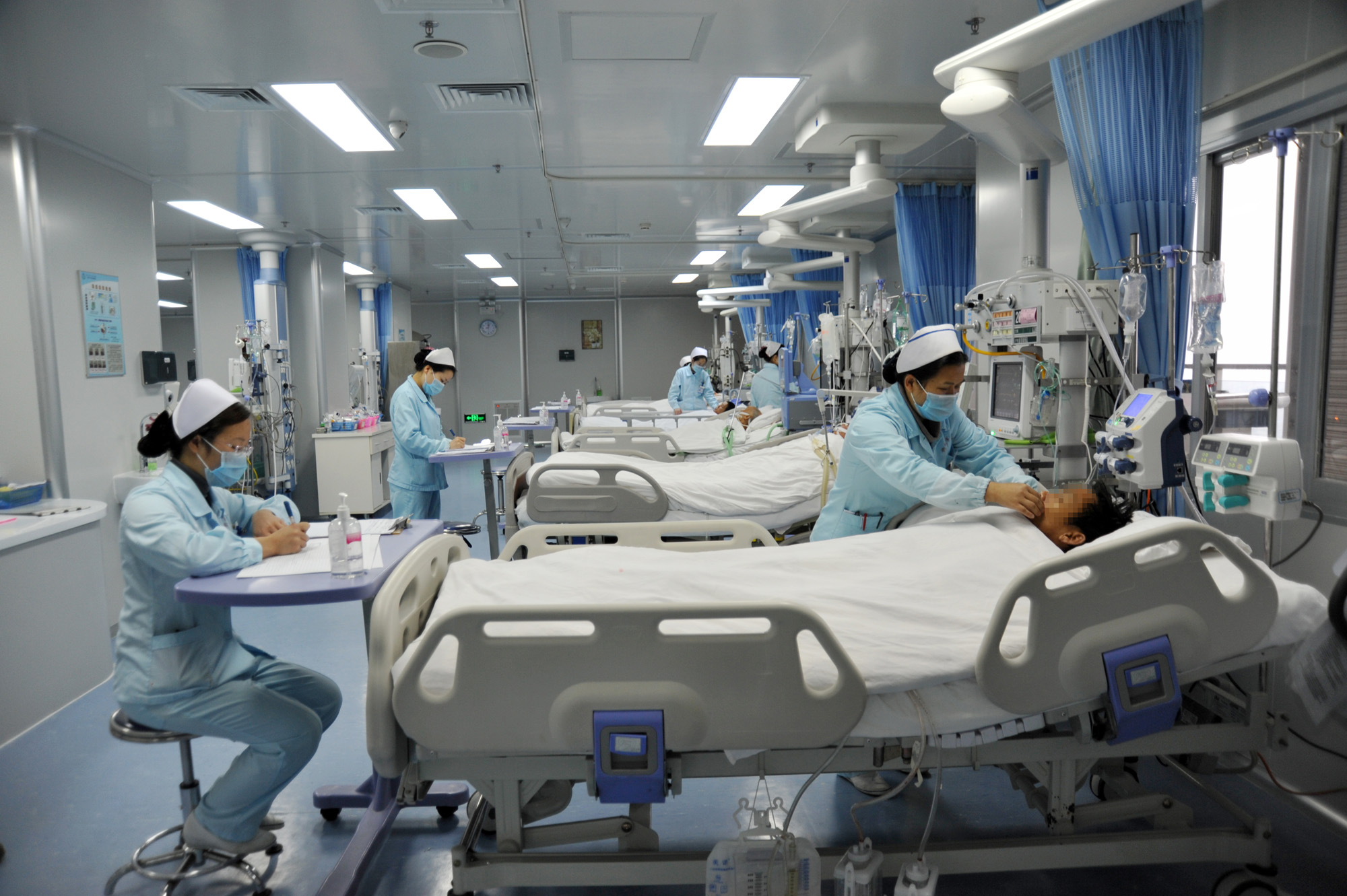 病房內所配備的醫療設備,90%以上為進口的,每床擁有一臺多功能全自動有創呼吸機、兼有創和無創等功能多參數監護儀;各種高尖端的床旁檢查和治療設備,如:床旁血液凈化治療儀(CRRT)、心電與除顫儀、主動脈球囊反博器、纖維支氣管鏡、升、降溫毯、床旁x光機、床旁超聲、床旁血氣分析、電解質測定等等,為危重病人的快速救治提供了有力保障。全病房傳呼急救系統,使醫務人員能對病情變化作出最快反應,迅速到位,避免出現搶救“死角”,確保患者安全。