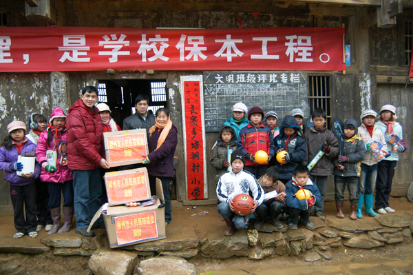 1月18日,保衛科干事成文虎和黨辦干事鐘計鋒代表醫院將全院職工捐贈的2400多件共70多個大編織袋御寒衣物送達融水縣良寨鄉培洞村,幫助村民度過隆冬。