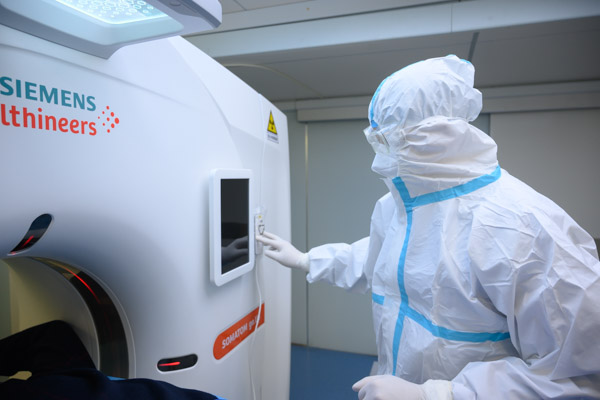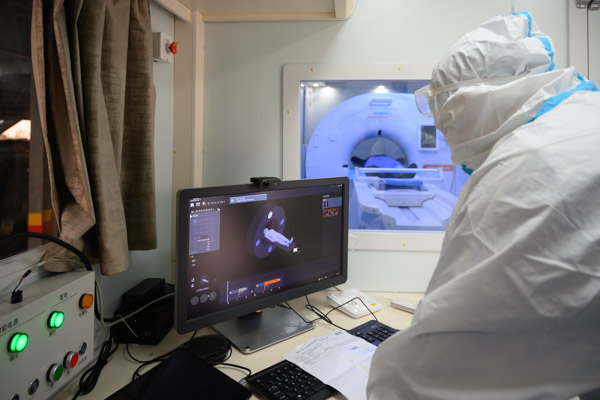 移動CT是疫情防控的重要武器,具有機動性、靈活性強、輻射劑量低的特點,在應急救災重大傳染病事件中發(fā)揮著重要作用。移動CT可以移動到任何地點,在獨立場地設置,能夠按照要求達到有效隔離和有效防護,迅速且安全的獲取感染患者CT影像。我院移動CT搭載了遠程操控系統(tǒng)(RSA),通過4G/5G進行遠程操控,克服資深技師人才缺乏的瓶頸,并且滿足現(xiàn)場CT技師變動的需要,可進行遠程會診,大幅提升診斷的準確性和效率,提升傳染病的防控和救治能力。