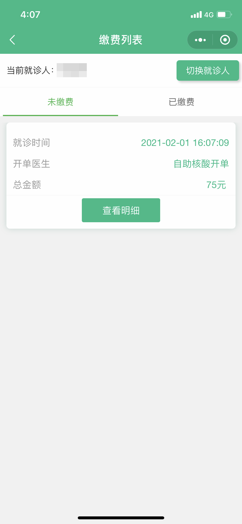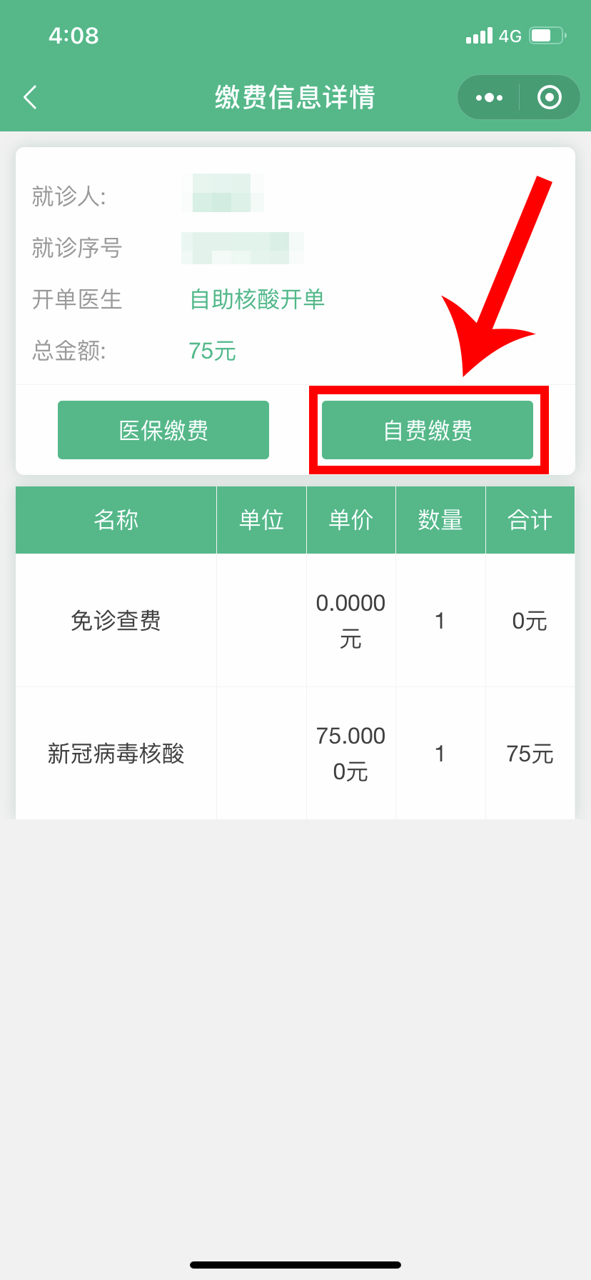 5.點擊自費繳費,進行繳費。