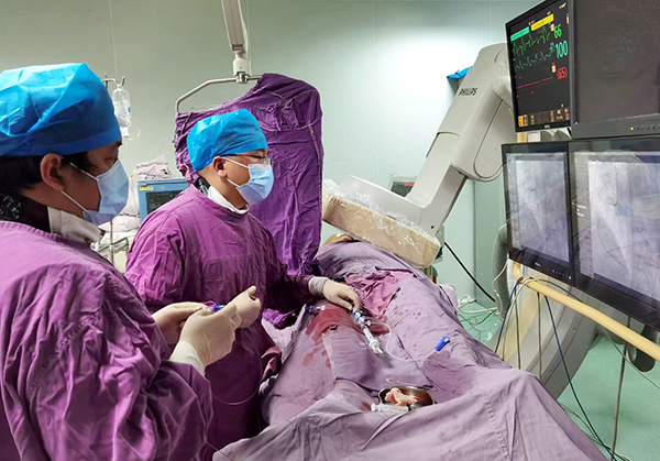 大年初一晚11時,感染性疾病科一咯血患者短時間咯血近300ml,血管外科負責人霍鑫接到急診電話后馬上趕到病房查看并為患者進行手術治療,11時30分患者被送入介入室,40分鐘后,手術成功結束。患者咯血的癥狀得以緩解,對醫護人員表達了衷心的感謝。