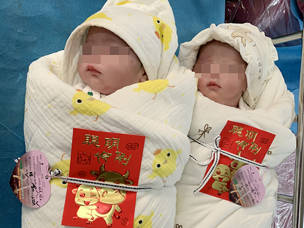 大年初一早上,又迎來牛年第二、第三新年寶寶,這是一對雙胞胎順產,入院B超檢查雙頭位,綜合評估后,值班醫生與孕婦及家屬溝通,鼓勵孕婦順產,實行無痛分娩術,在助產士一對一陪伴下無側切順利分娩,喜提兩件小棉襖過新年,一家人喜笑顏開!產科蒙文霞主任,周一萍副主任、郭莉護士長也到科室給堅守一線崗位的同事及孕產婦慰問拜年,給大家帶去滿滿的祝福和問候。