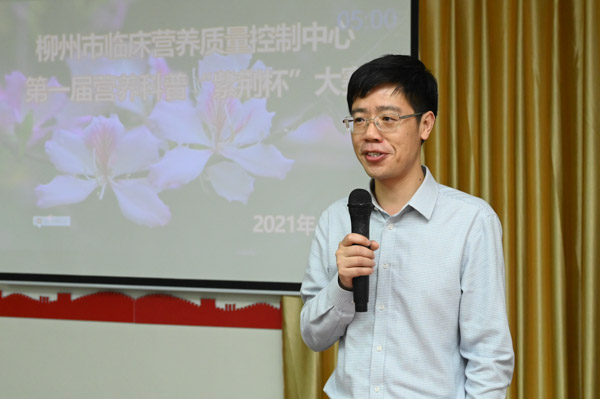 為貫徹落實(shí)《健康中國(guó)2030規(guī)劃綱要》,深入實(shí)施《2017-2030年國(guó)民營(yíng)養(yǎng)計(jì)劃》,提高國(guó)民營(yíng)養(yǎng)健康水平,4月24日,柳州市臨床營(yíng)養(yǎng)質(zhì)控中心第一屆 “紫荊杯”科普大賽在我院成功舉辦。我院副院長(zhǎng)肖運(yùn)平,廣西臨床營(yíng)養(yǎng)質(zhì)控中心主任張勇勝,副主任蔣志雄、韋少雪出席大賽。