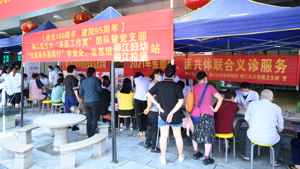 為提高群眾健康意識,更好指導群眾就醫,讓家門口就能享受市級專家優質診療和專業健康指導服務,5月8日下午,由我院“名醫工作室”團隊一行多位專家,聯合柳江區婦幼保健院在當地開展“優質服務基層行”免費義診活動。聞訊而來的群眾在義診開始前就早早在醫院大院內等待,排起了長龍,等待專家們的到來。