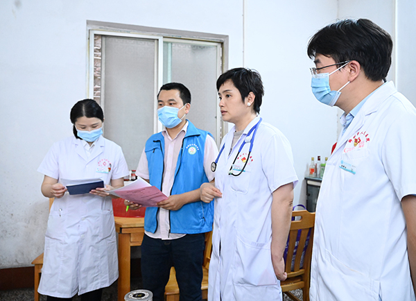 我院以高度的政治責任感和使命感,積極落地落實落細。5月14日下午,根據醫院黨委安排,黨辦主任徐輝全,醫療保健部、心血管內科黨支部副書記、心血管內科專家劉潔,神經內科專家侯蘭芳,聯合我院緊密型醫聯體柳東衛生院家庭醫生岑敏團隊一行,在潭中街道辦干部孫亞強的陪同下,到廖爺爺的家中為其進行健康評估及健康宣教。