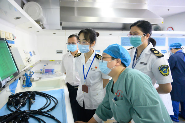 專家組一行分別對(duì)我院實(shí)驗(yàn)室生物安全,醫(yī)療器械消毒供應(yīng),預(yù)防接種,廢物廢水處理,傳染病疫情報(bào)告,預(yù)檢分診、發(fā)熱門診及內(nèi)鏡診療室的運(yùn)行情況等進(jìn)行了詳細(xì)的督查。