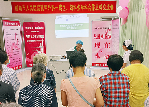 為開展多學科聯合診治,真正做到為患者服務,乳腺甲狀腺外科一病區聯合婦科二病區團隊于5月28日下午舉辦了一場患教交流會。