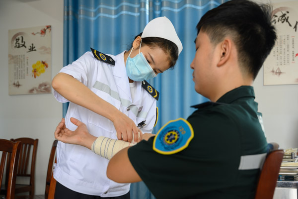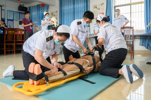 考核現場,醫護人員順利完成了成人氣管插管、成人基礎生命支持、止血與包扎術、頸椎損傷固定與搬運四項急救技能的考核,嫻熟的操作和默契的配合得到了評審專家的一致好評。