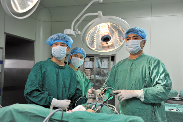 對于泌尿系統疾病的診治,以前的傳統方式是做開放性手術,剖腹探查,采用長達20 cm以上的切口,術中需切斷腹部或腰部各層肌層,損傷大、恢復慢。近年來,隨著腔鏡技術和醫療手段的進步,僅通過幾個直徑0.5~1cm的腹壁小孔就可完成手術,并使用先進的超聲刀及結扎束等高尖端設備分離止血,具有出血少、恢復快、住院時間短的優勢,使泌尿外科手術逐步告別“刀光劍影”,步入“微創時代”。